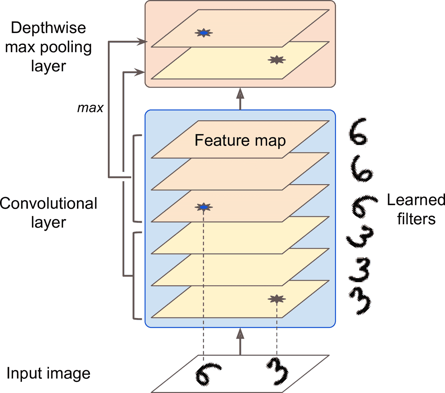 图 14-10 深度最大池化层可以让 CNN 学习到多种不变性
