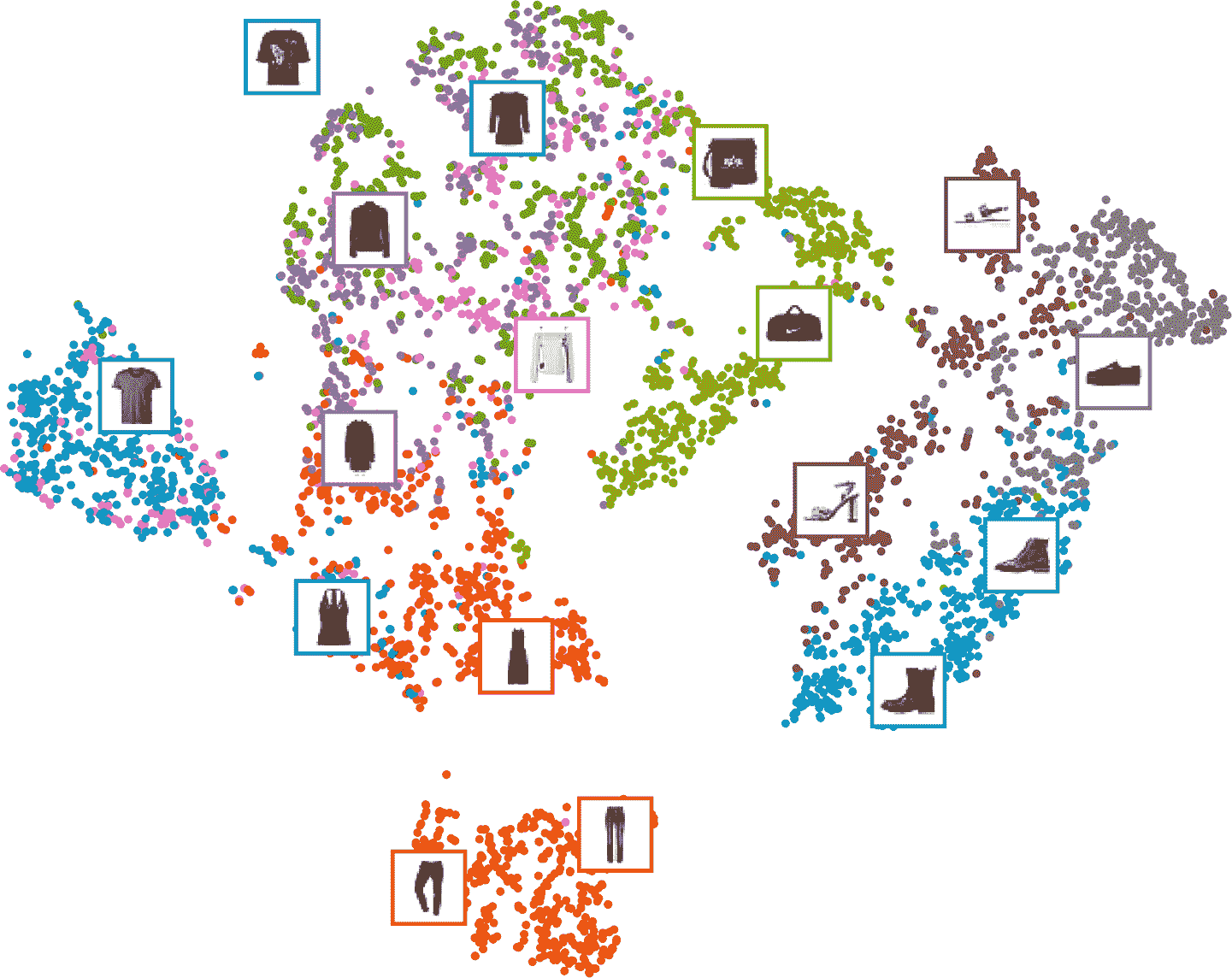 图 17-5 使用自编码器和 t-SNE 对 Fashion MNIST 做可视化