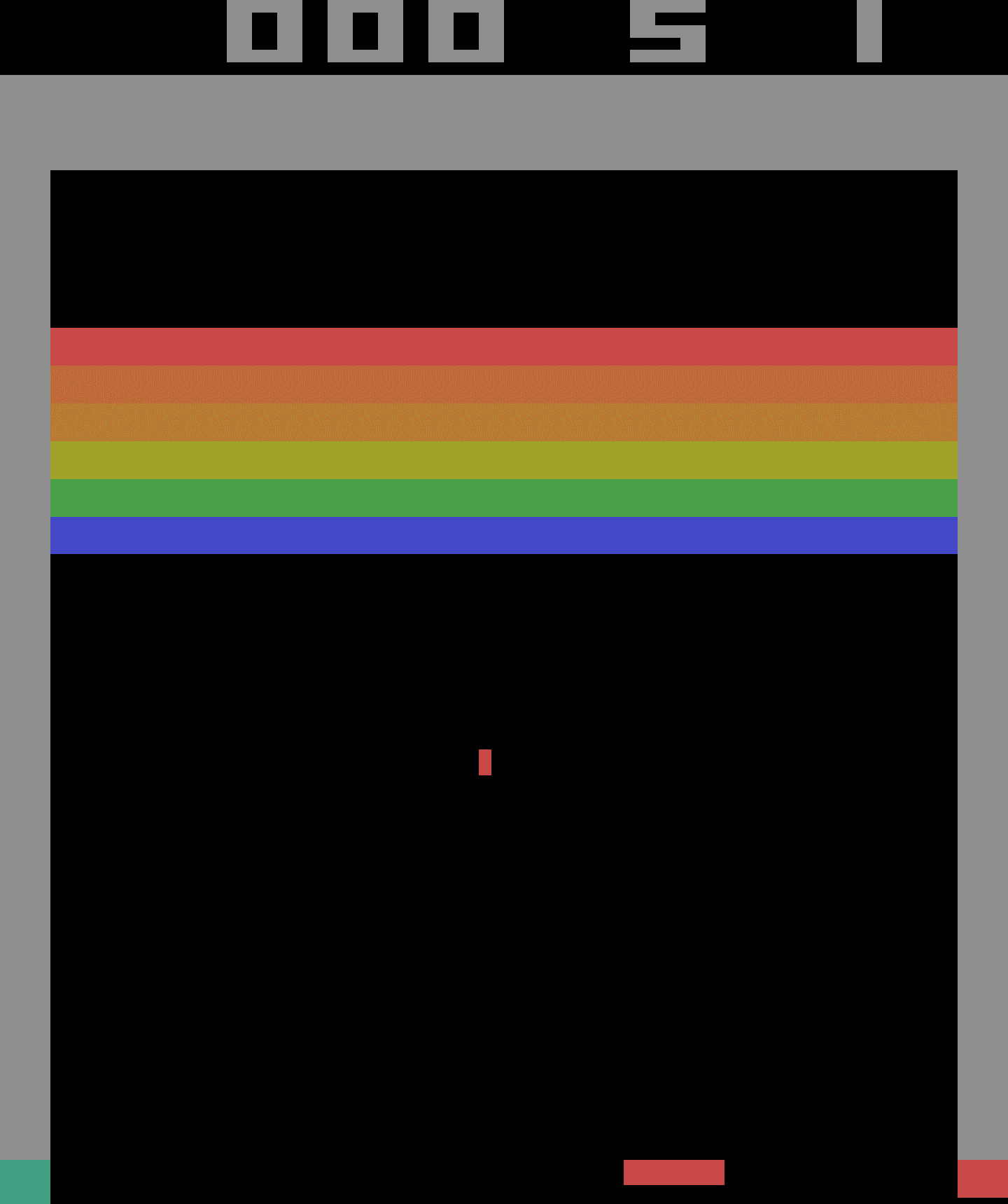 这个函数先向收集策略询问初始状态(给定环境批次大小,这个例子中是 1)。因为策略是无状态的,返回的是空元组(所以可以写成policy_state = ())。然后,创建一个数据集的迭代器,并运行训练循环。在每个迭代,调用驱动的run()方法,传入当前的时间步(最初是None)和当前的策略状态。运行收集策略,收集四步的经验,将收集到的轨迹广播给接力缓存和指标。然后,从数据集采样一个批次轨迹,传给智能体的train()方法。返回对象train_loss,可能根据智能体的类型有变动。接着,展示迭代数和训练损失,每隔 1000 次迭代,输出所有指标的日志。现在可以调用train_agent()做一些迭代,智能体就能逐渐学会玩 Breakout 了。